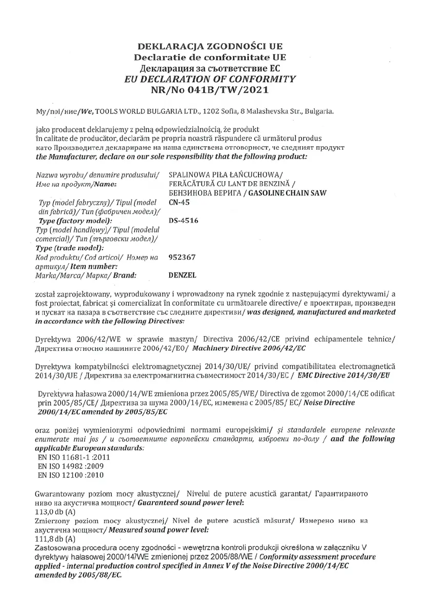 ДЕКЛАРАЦИЯ ЗА СЪОТВЕТСТВИЕ