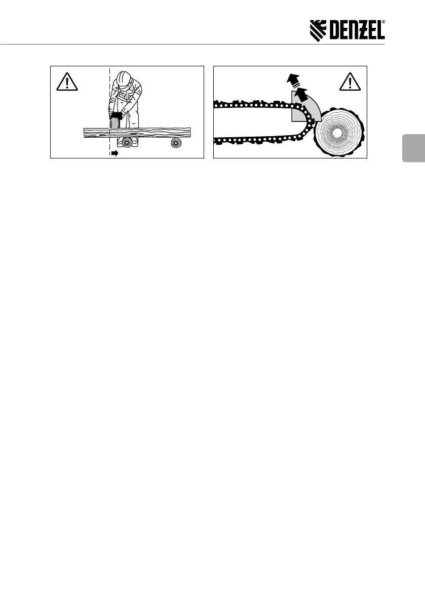 rapide, au cours de laquelle l'outil rebondira vers le haut et vers l'opérateur. Le blocage de la chaîne au bas