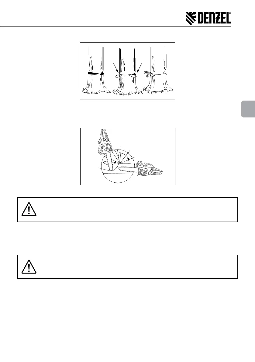 Kettensäge an den nicht geschnittenen Stammteil zu fallen.