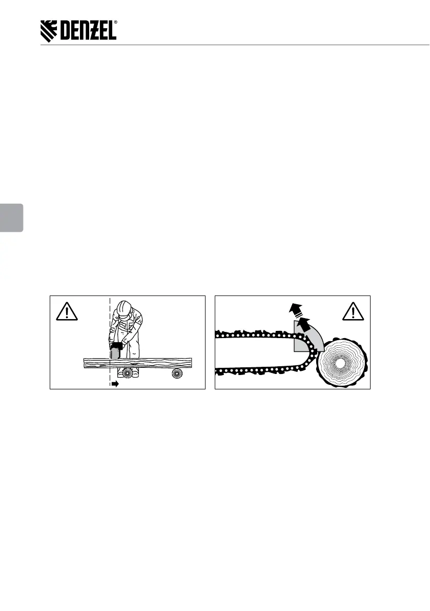 con la cadena de la sierra. Al aserrar troncos y tablas se debe utilizar un soporte confiable (estructura