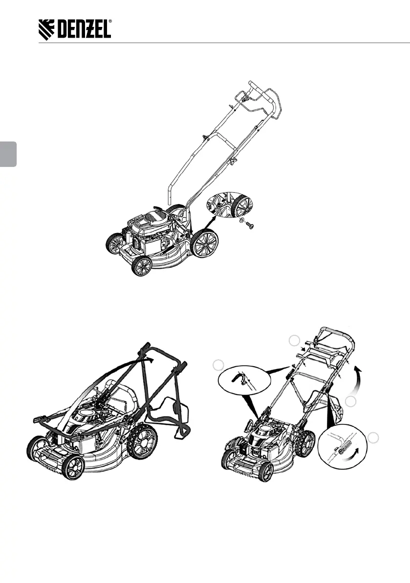 Поставете ръчката в специалните отвори на корпуса на косачката за трева и я закрепете с помощта на