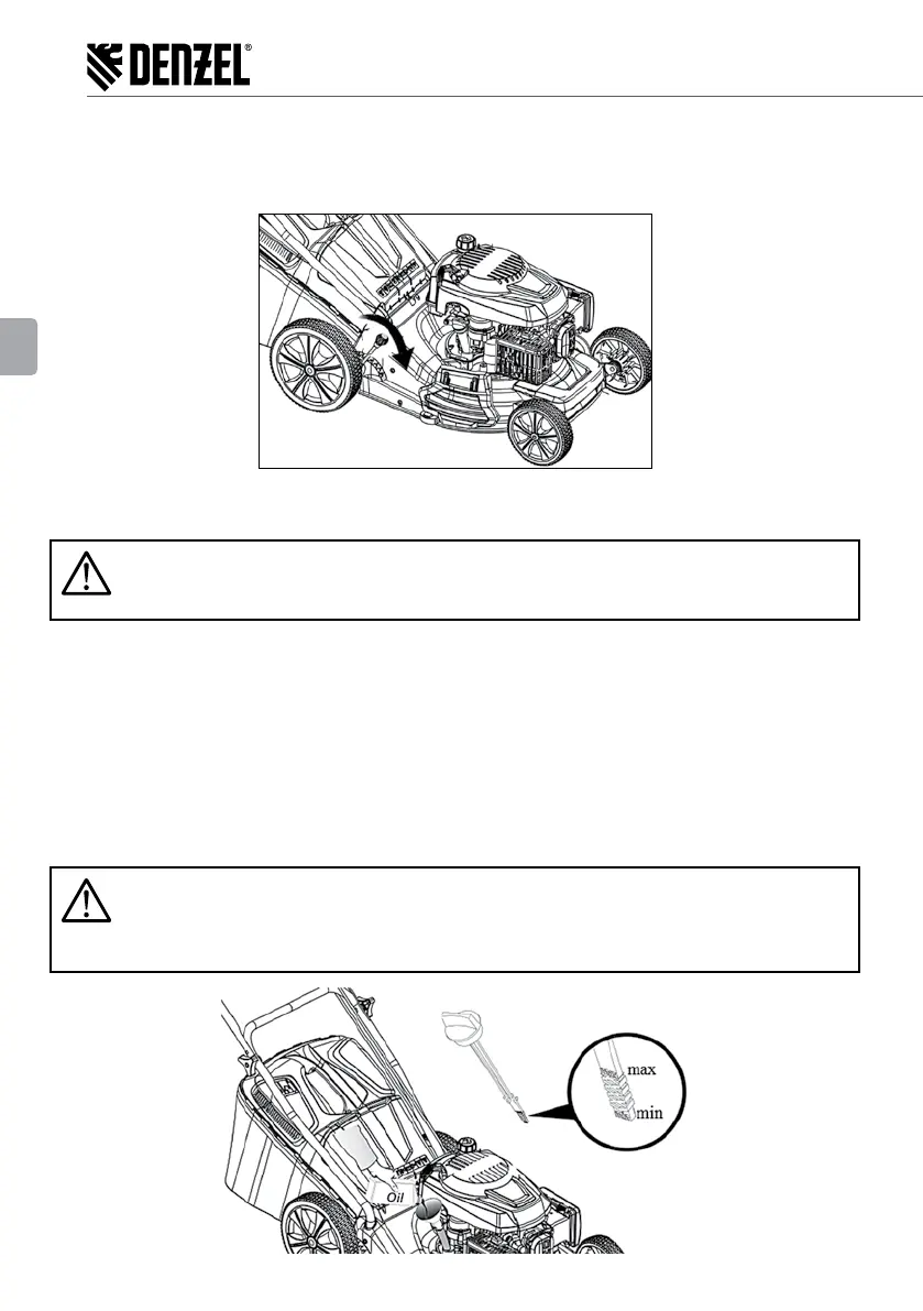 Косачката за трева се доставя без масло в двигателя! Преди първо пускане на устрой-