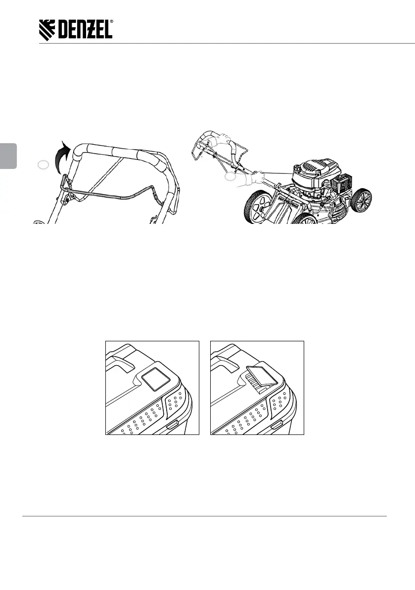 Когато кошът за събиране на трева е празен, маркировката се намира отгоре или позицията й се коле-