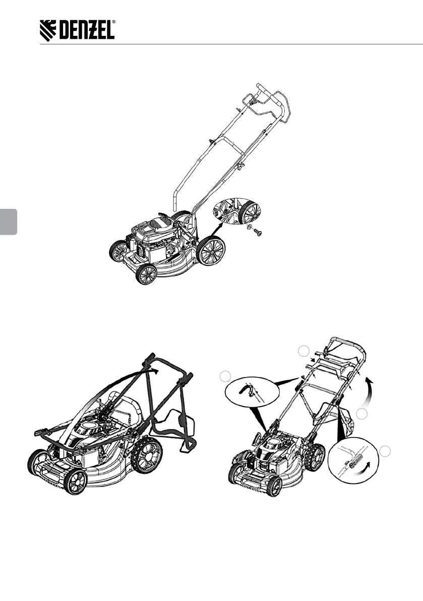 Włóż uchwyt w stanie zmontowanym do specjalnych otworów w korpusie kosiarki i przymocuj go za pomocą