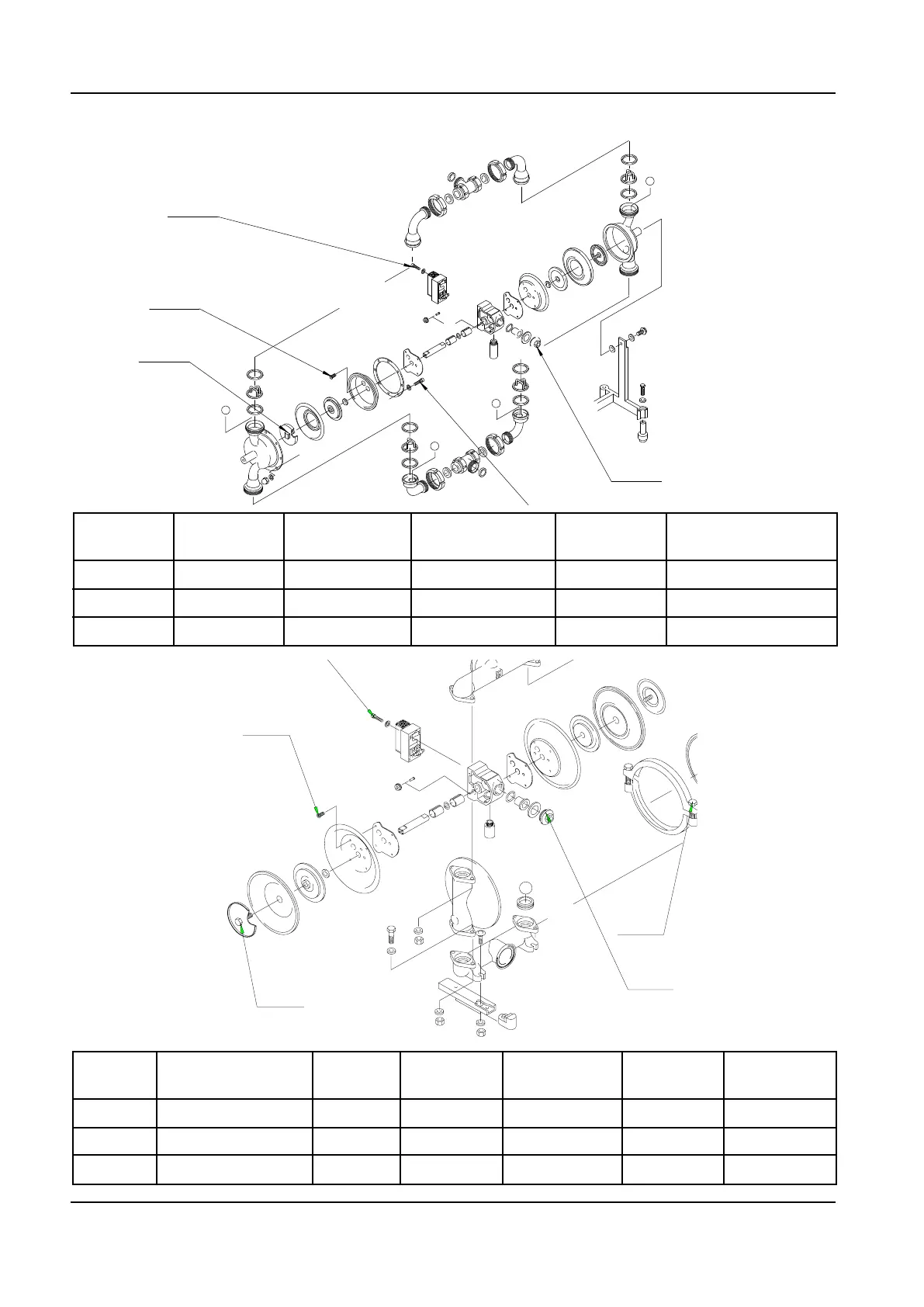 Pump size Suction / Discharge Air inlet Air valve Piston Air chamber Clamp band
