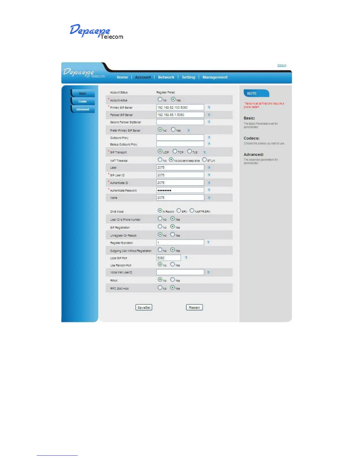Depaepe Telecom HD2000 - Account