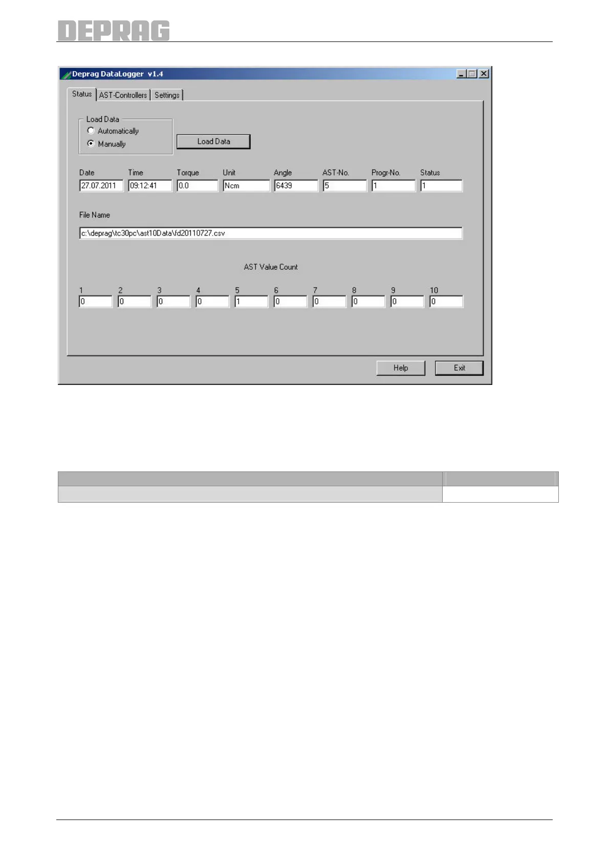 The DataLogger provides the possibility to record the end value data sets from up to ten