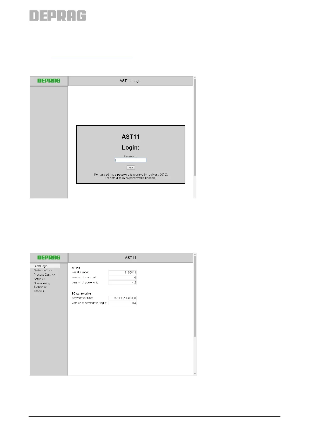 To access the web interface, enter the IP address of the sequence controller AST11 (also