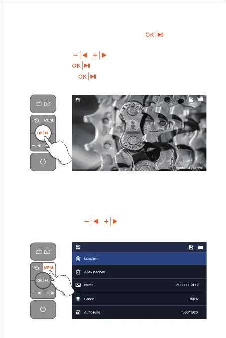 1. Wenn Sie Fotos/Videos ansehen, drücken Sie auf MENU,
