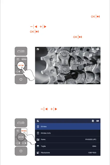 1. Quando si visualizzano foto/video, premere MENU per