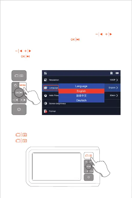 タンを押して Language を選択し、 ボタンを押して言語選