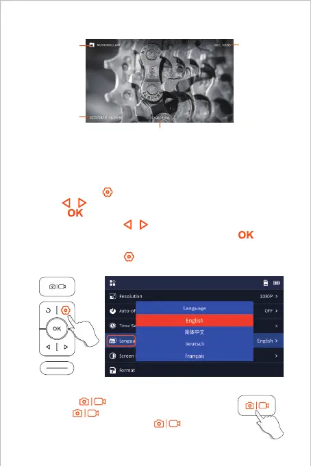 Sie die / Taste, um Language auszuwählen, und drücken Sie