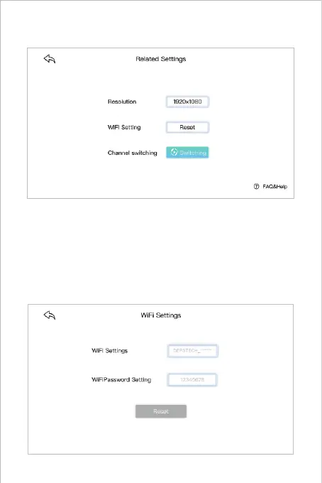 Depstech WF028 - APP Introduction; App Settings: Resolution and WiFi