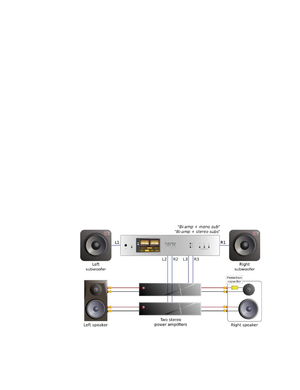 Figure 5 shows the physical connections for an active two-way speaker. If stereo