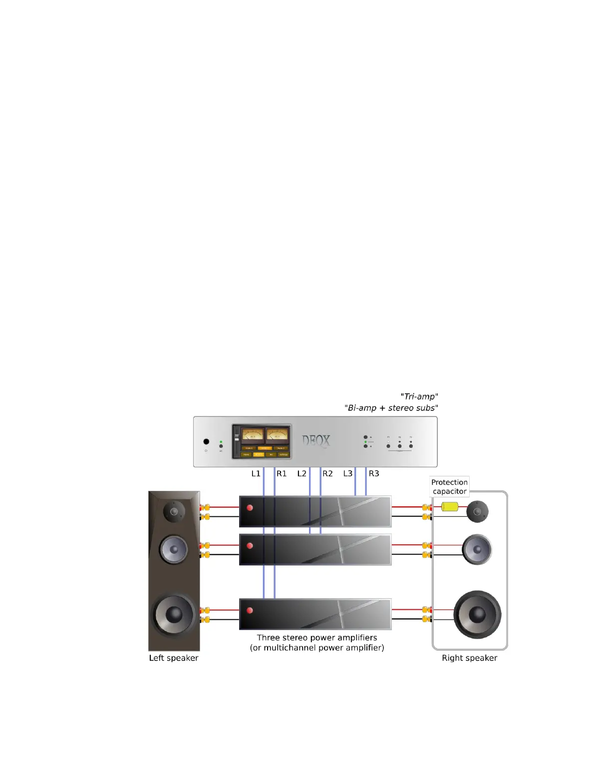 Figure 6 shows the physical connections for an active three-way speaker. The DEQX can