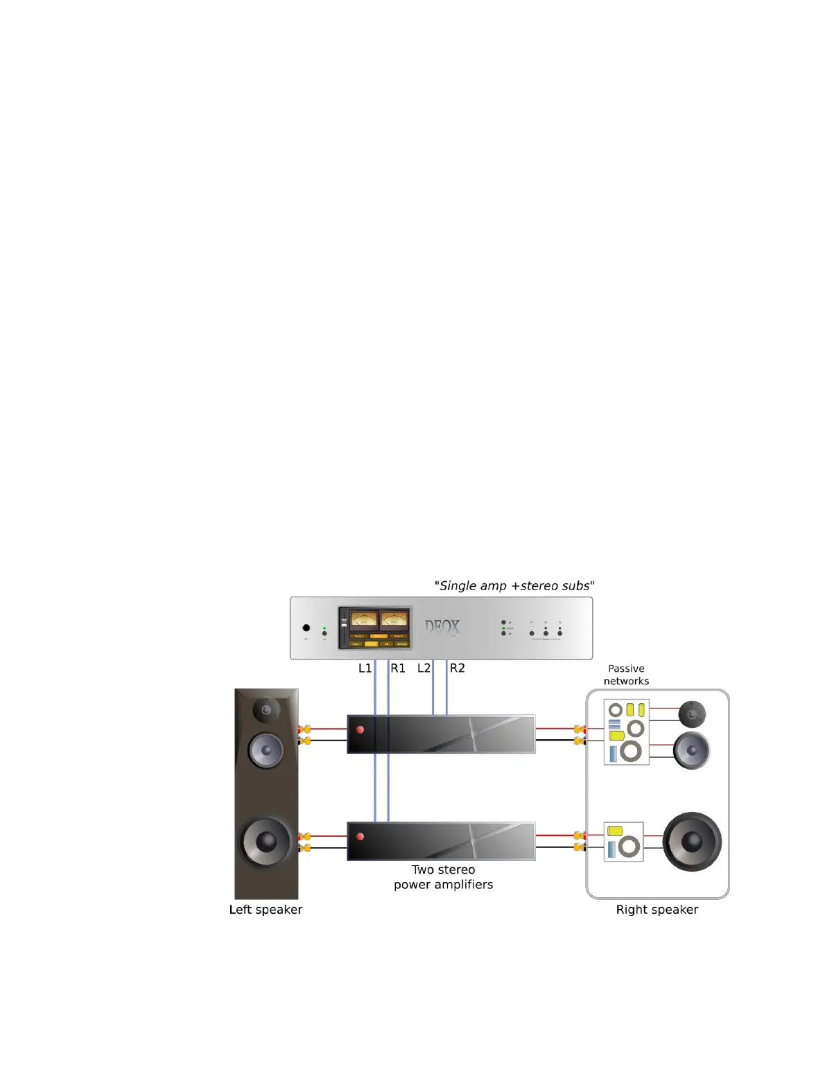 x Otherwise, use the “single amp with optional stereo subs” speaker configuration