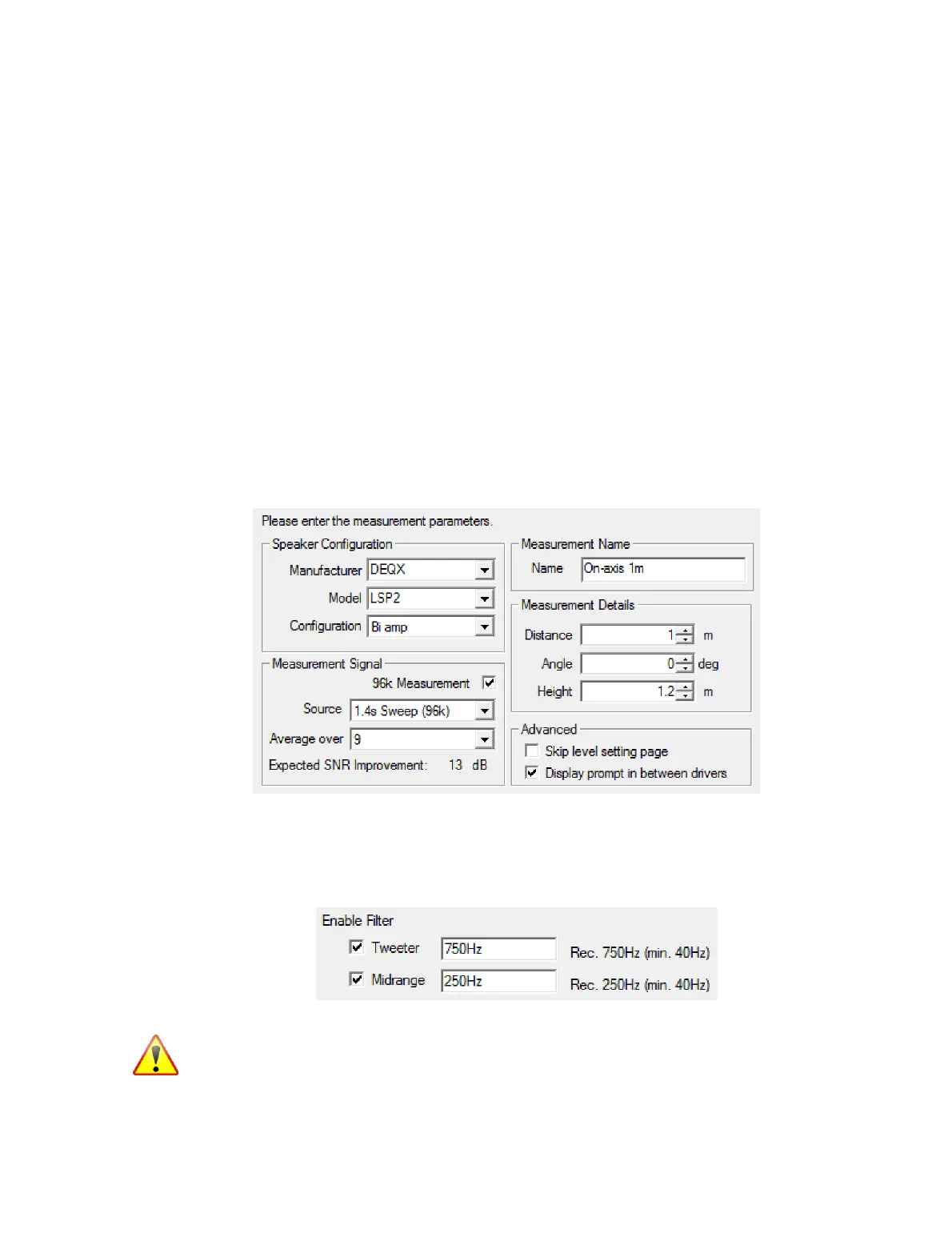 set a lower frequency limit on the measurement sweeps for the tweeter and midrange