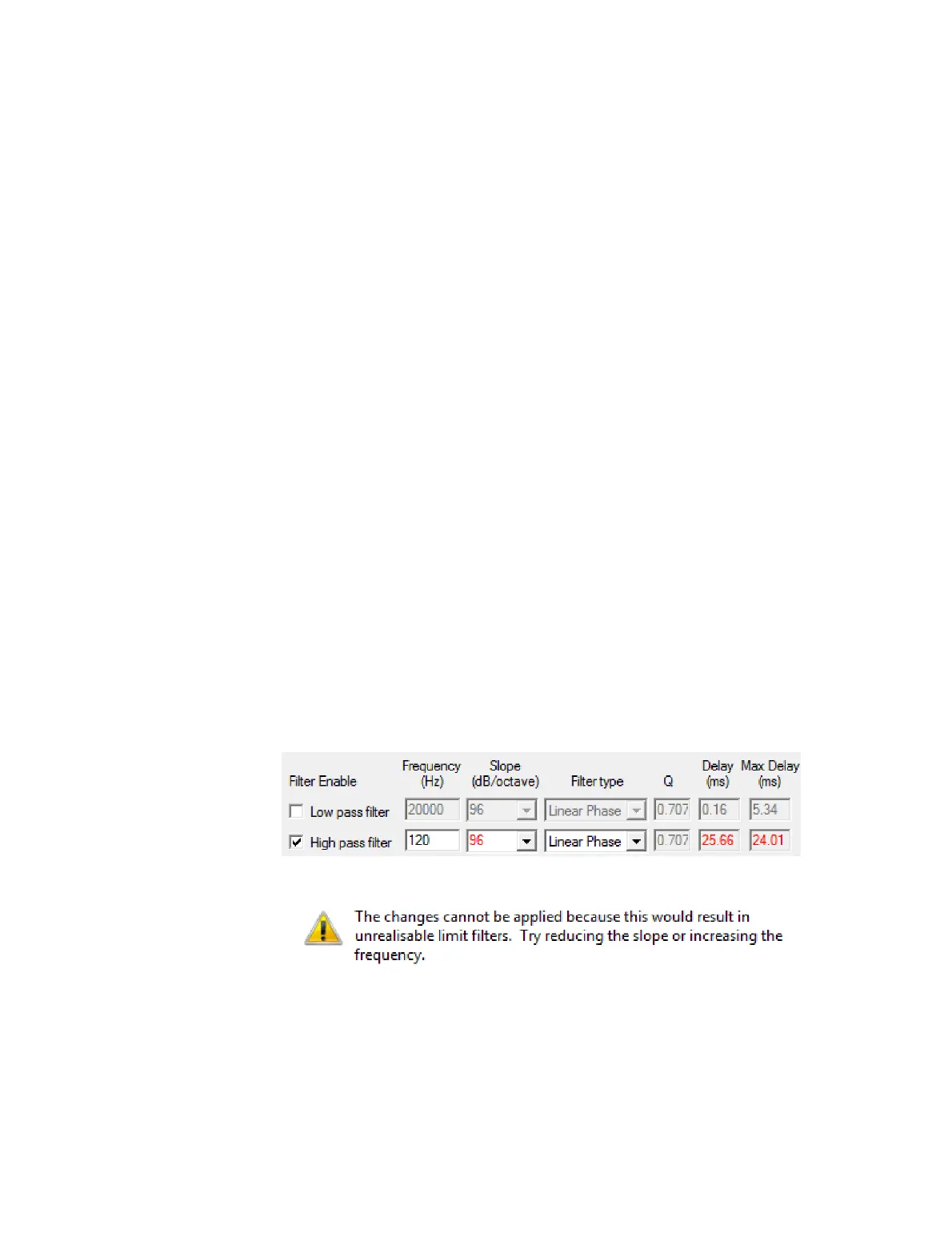 If you manually enter an unrealizable combination of frequency, slope, and crossover