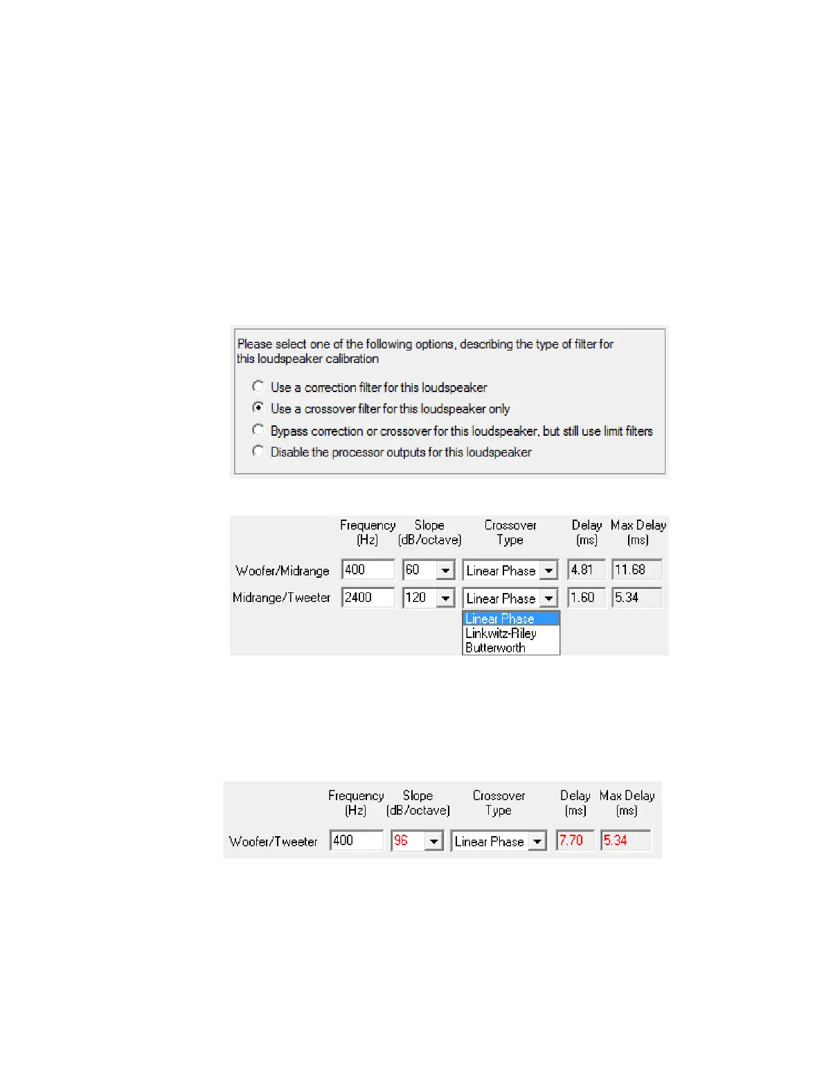 To use this mode, select “Use a crossover filter for this loudspeaker only” on the Filter