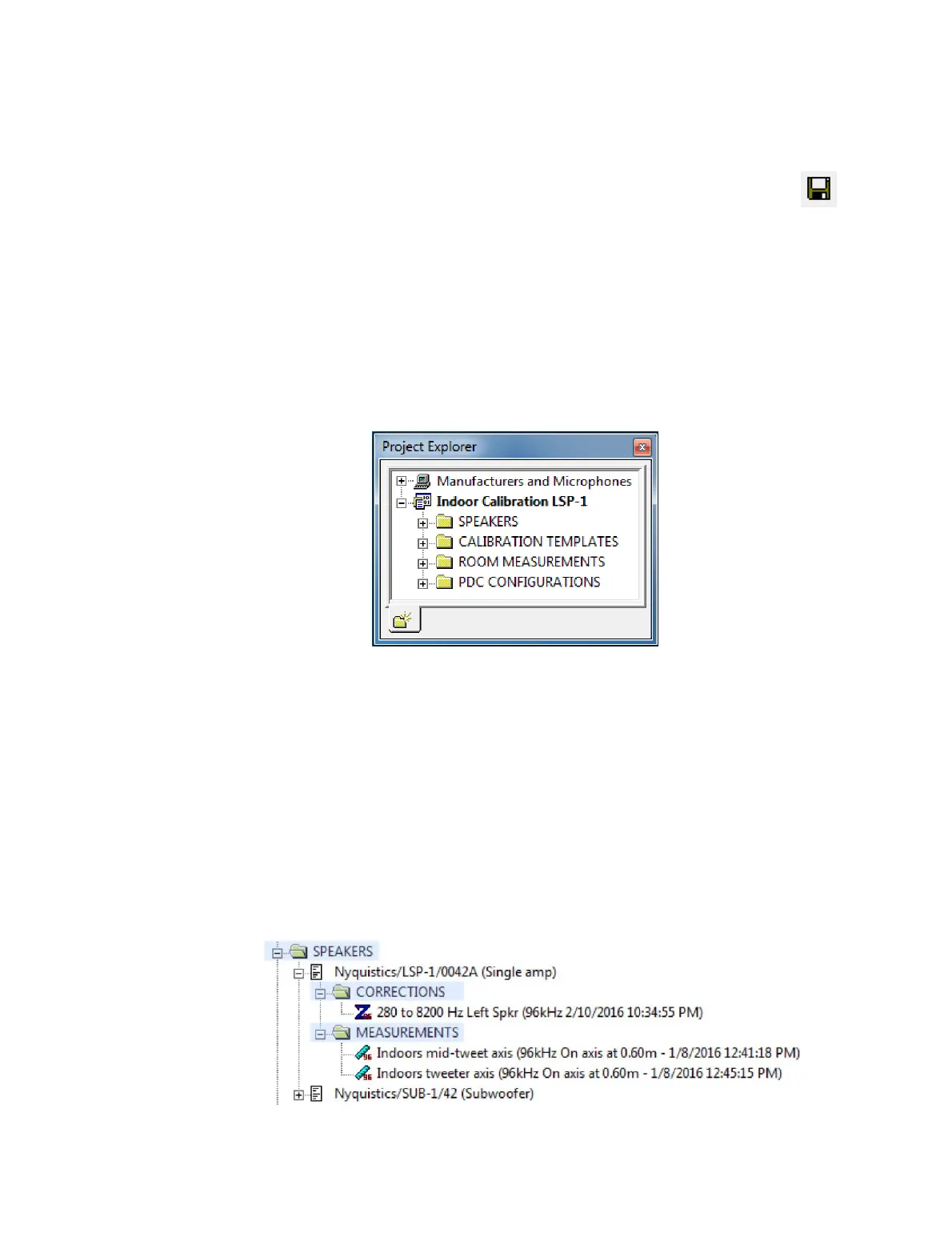 containing correction filters generated for that speaker, and MEASUREMENTS,