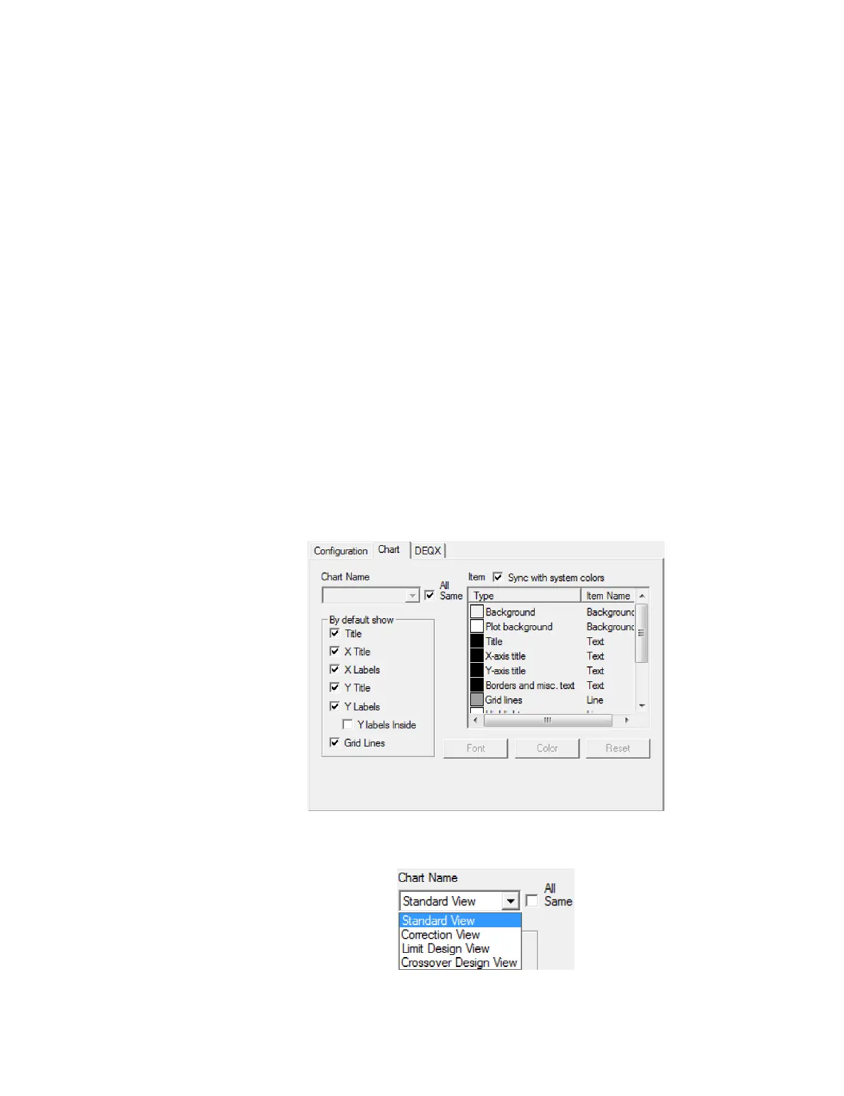 This tab is used to customize elements of the various charts in DEQX-Cal, such as the