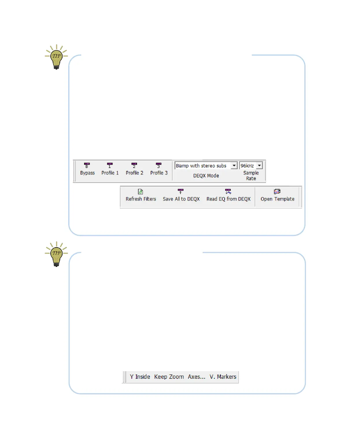 the toolbar split for space reasons, but in DEQX-Cal it will be a single row).
