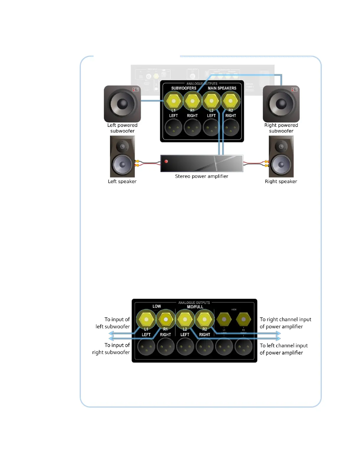 The diagram above illustrates the connections for a pair of full range speakers and a pair