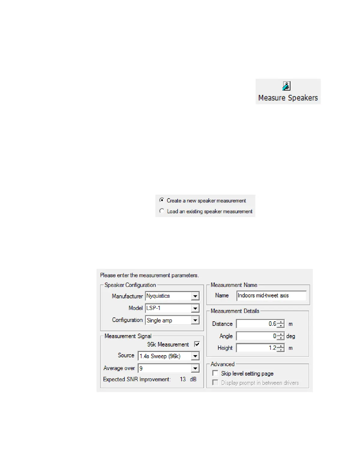 following steps assume that you have selected “Create a new speaker measurement.”)