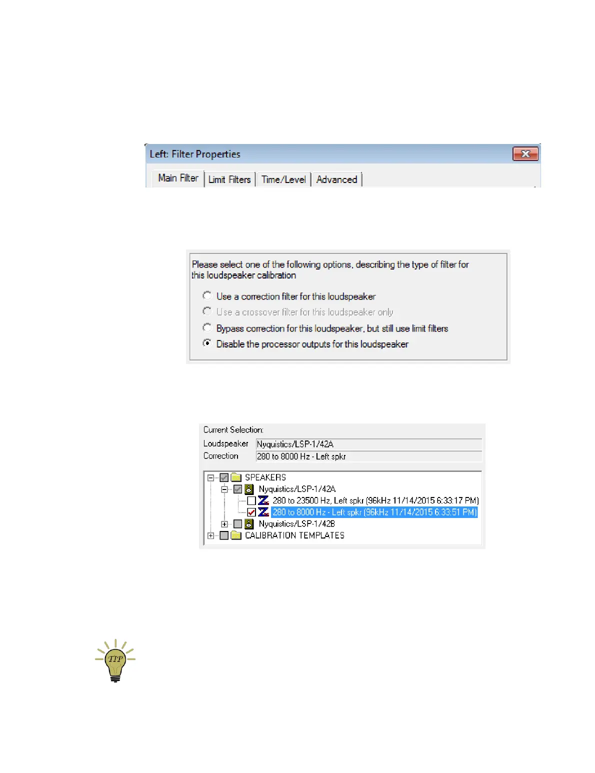 The filtering applied to each individual speaker is set in its Filter Properties dialog,