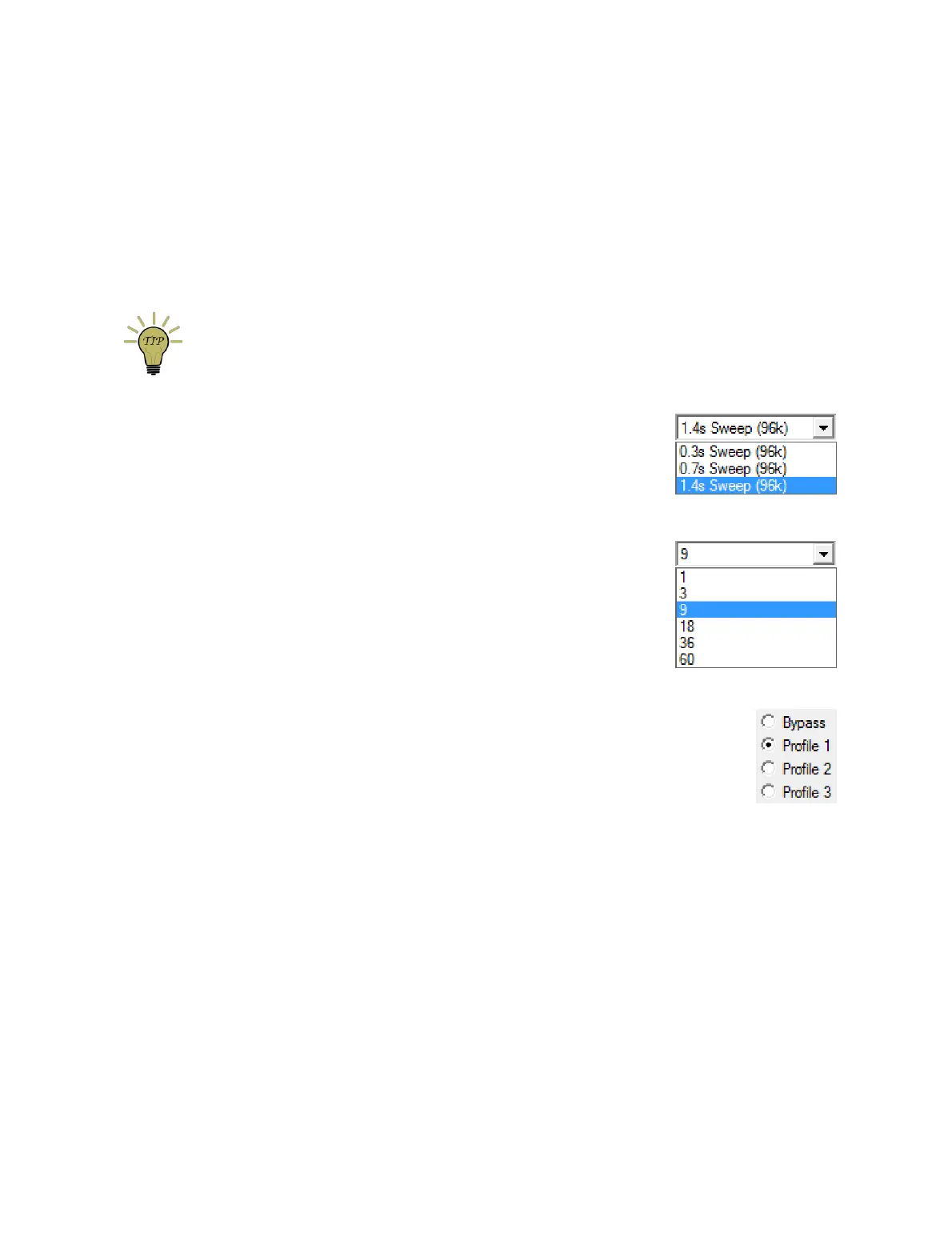 from 0.3 to 1.4 seconds. Longer sweeps give higher