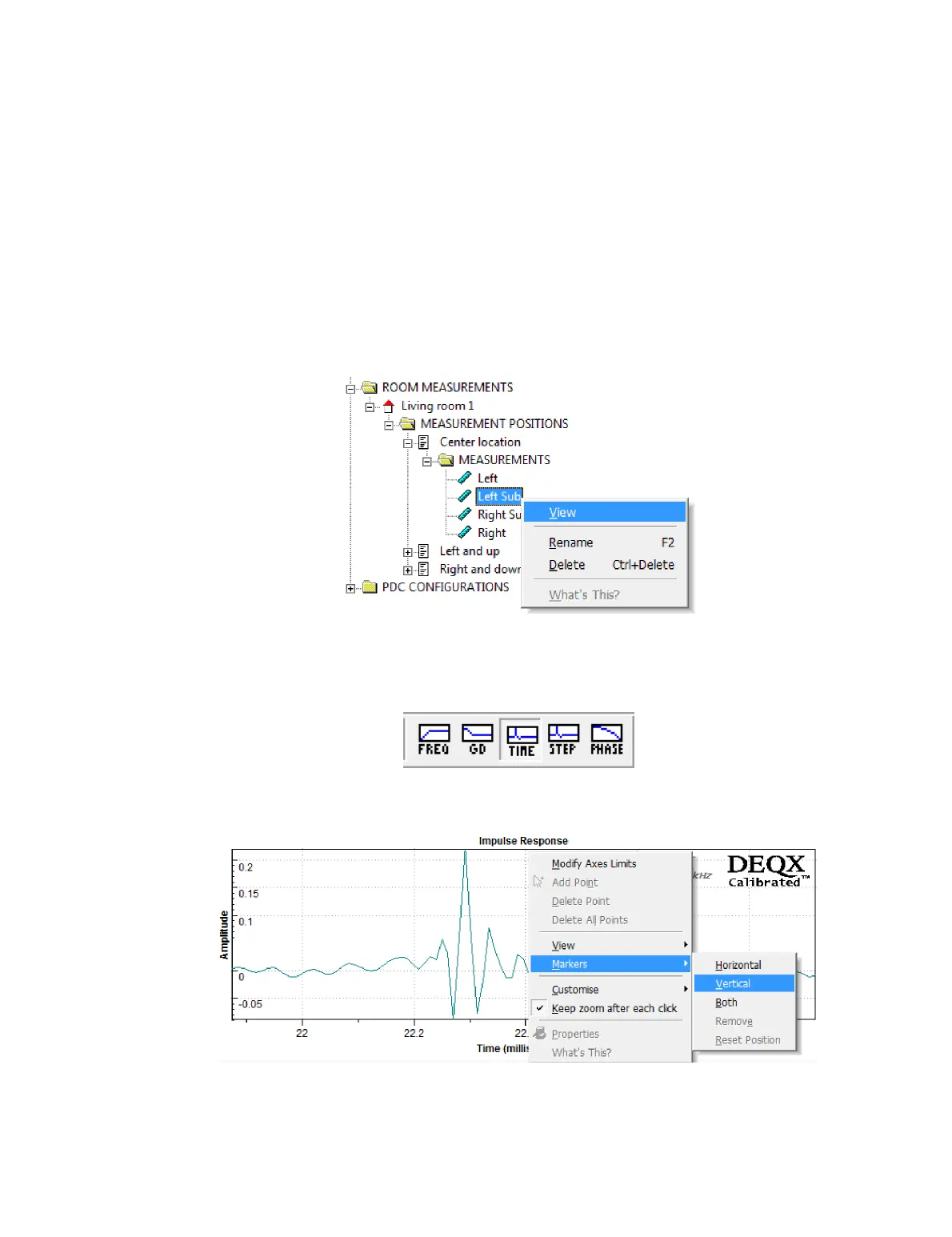 Open one of the speaker measurements and click the Time button in the chart toolbar