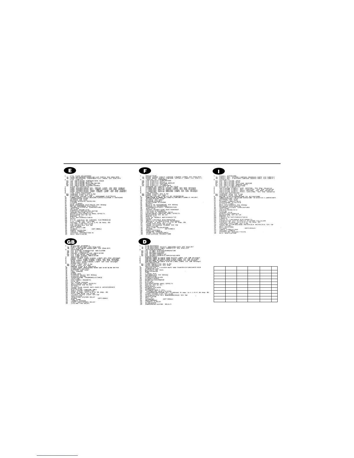 Derbi GP1 125 E3 - GP250 Electrical Wiring Diagram Legend