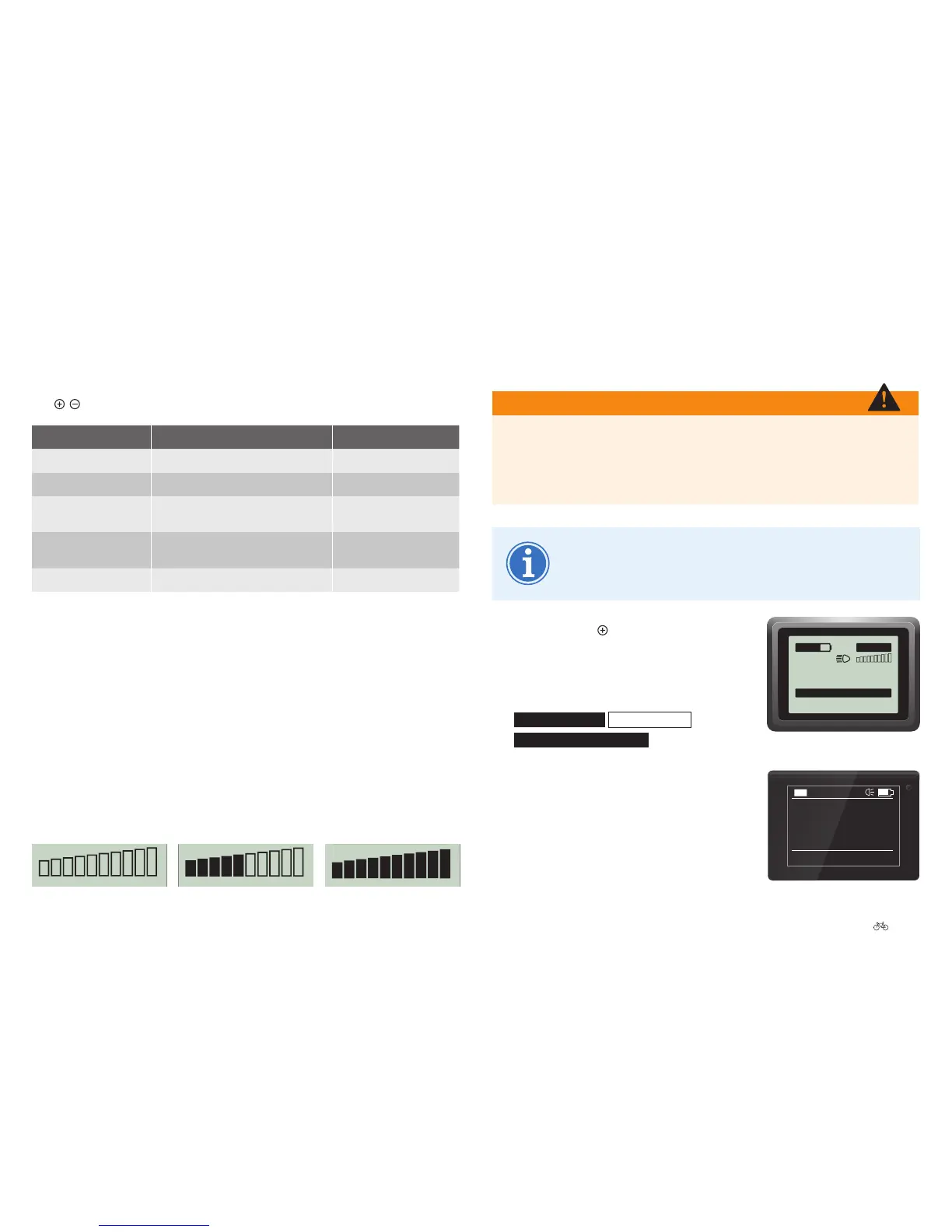 zeigt, wie stark Sie gerade vom Antrieb unterstützt werden. Je mehr Felder
