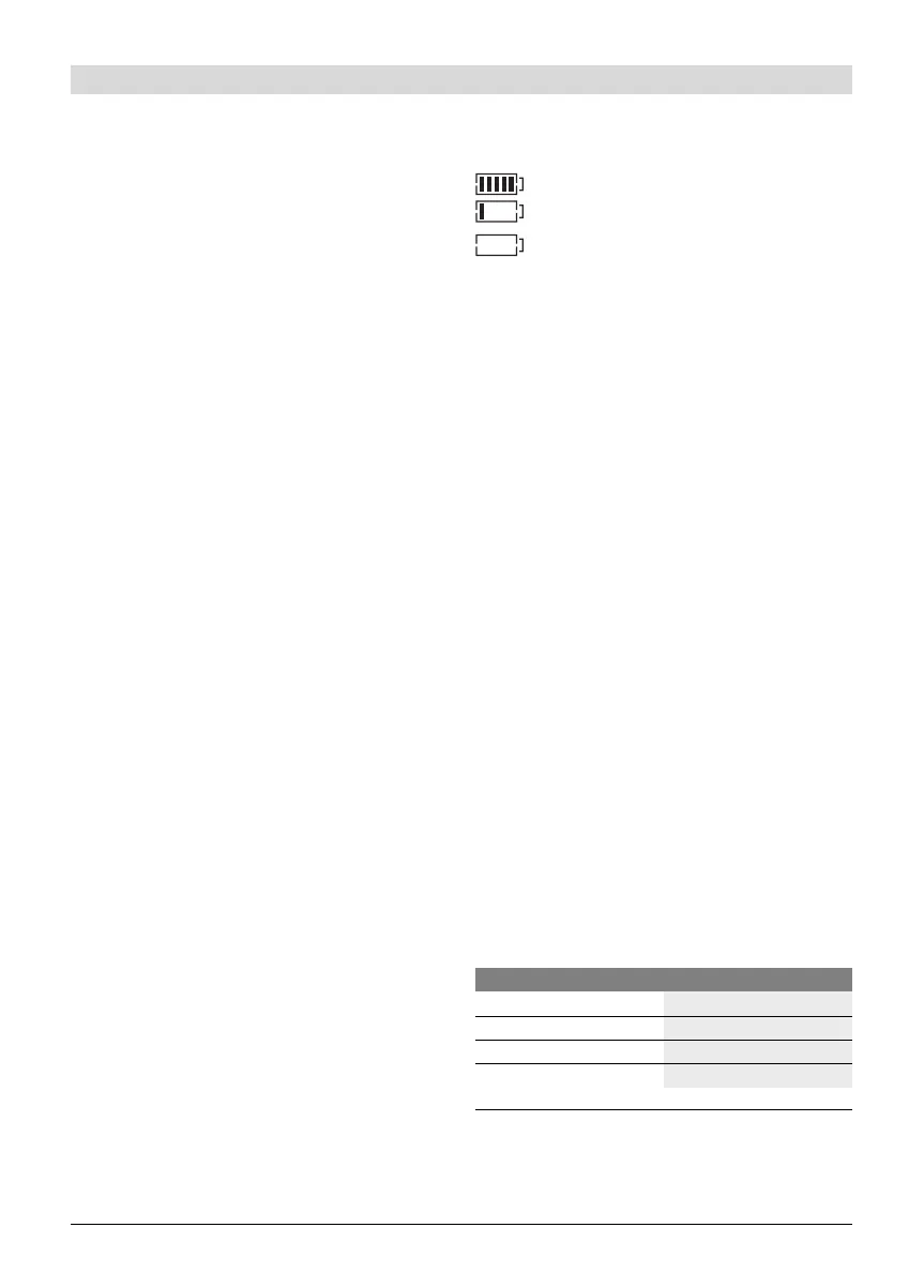 On indicator g, each bar of the battery pack symbol is equiva-