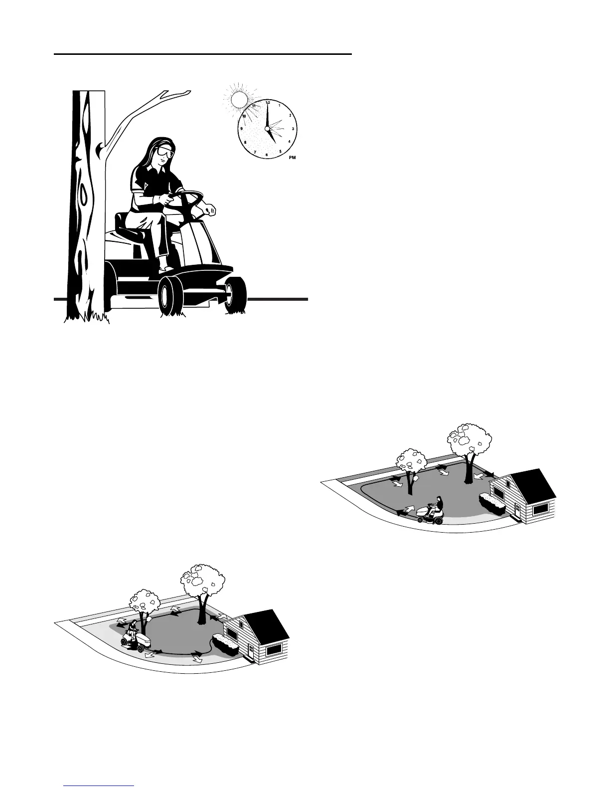 the best mowing pattern to use. Obstructions such as