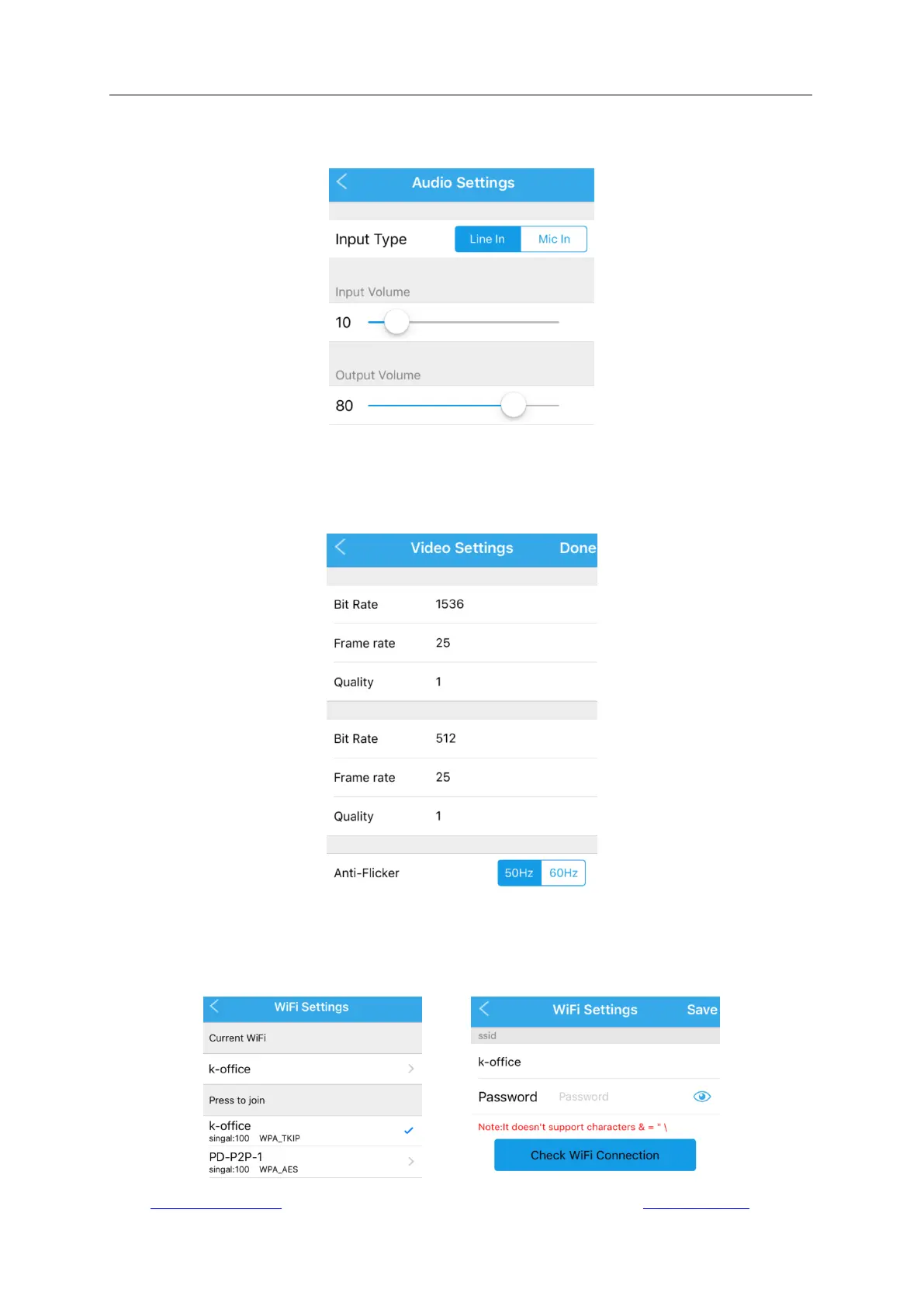 Go to “Camera Setup” -> “Audio Settings” to configure the audio parameters. It is only available