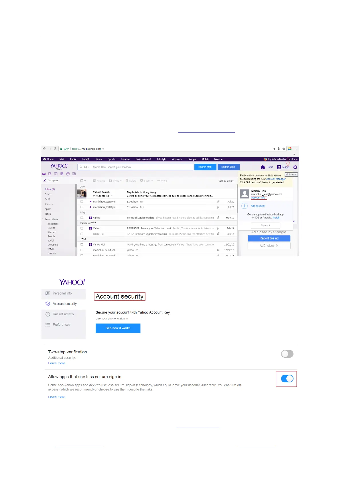 access it, take the Gmail and Yahoo as an example, you need to allow the third-part app to access