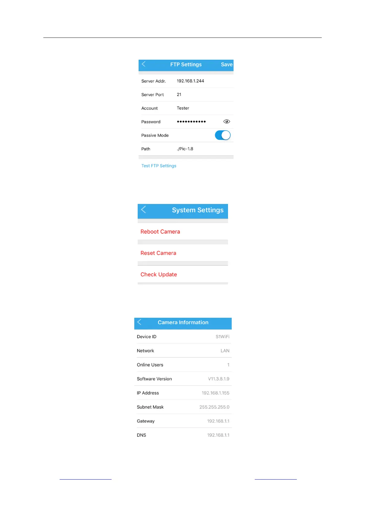 snapshot/video recordings to FTP server. After configuration, please test and then apply the