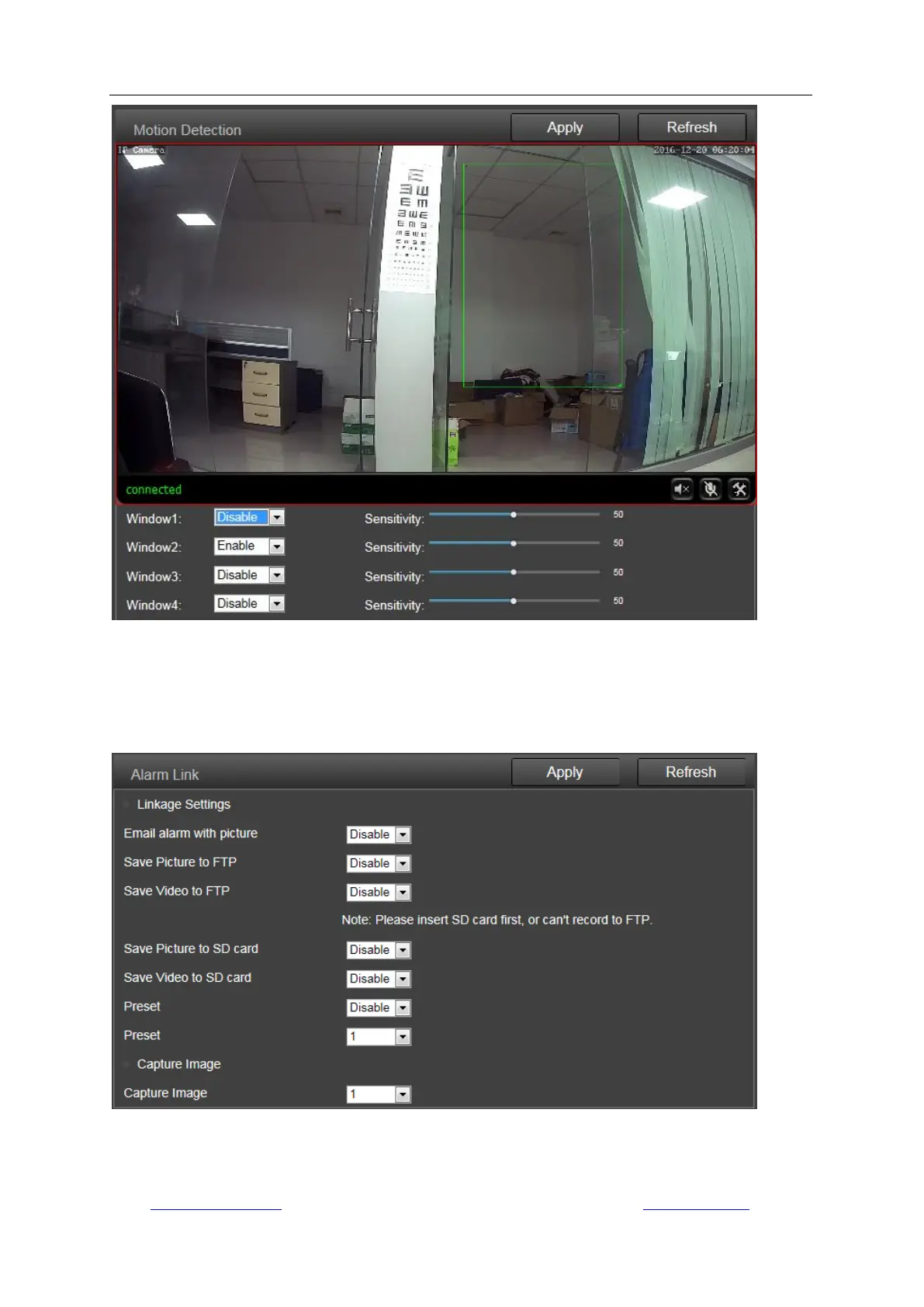 path (SD card, FTP server) and set up preset positions for motion detection (only for Pan/Tilt