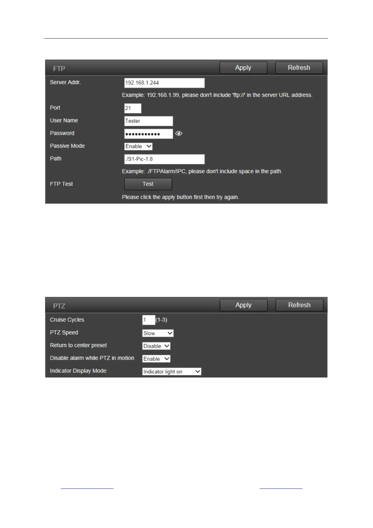 Setting FTP server to save recordings on computer is available. You can click the “Test” button to