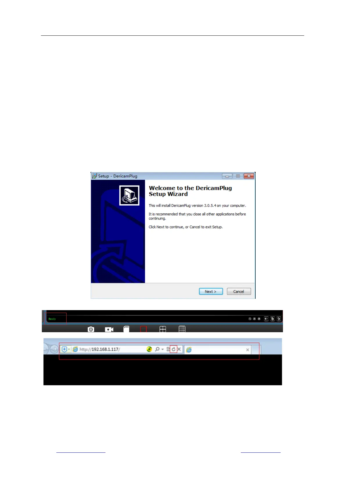 Before you start the live view in windows OS in IE browser, please install the dericam-plugin first.