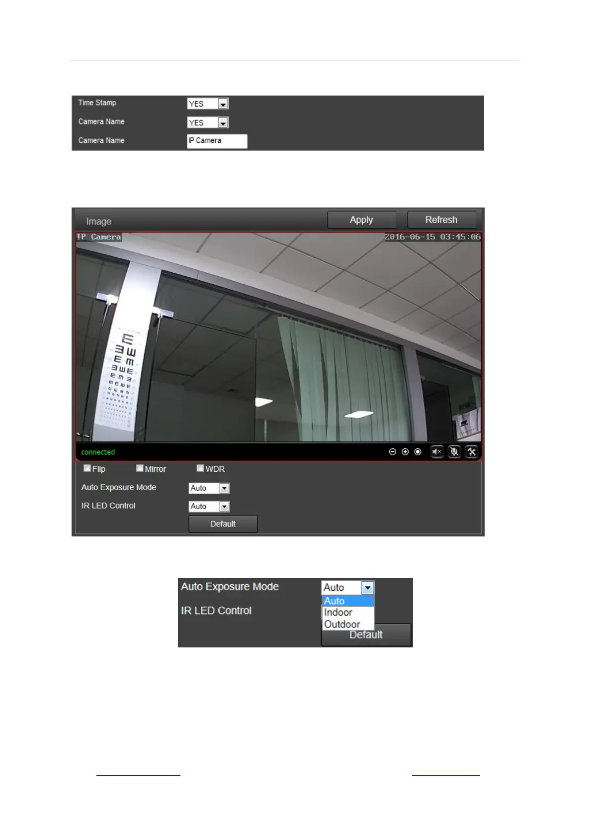 Tick/tick off in the boxes of Flip, Mirror, WDR to control display mode of the image.