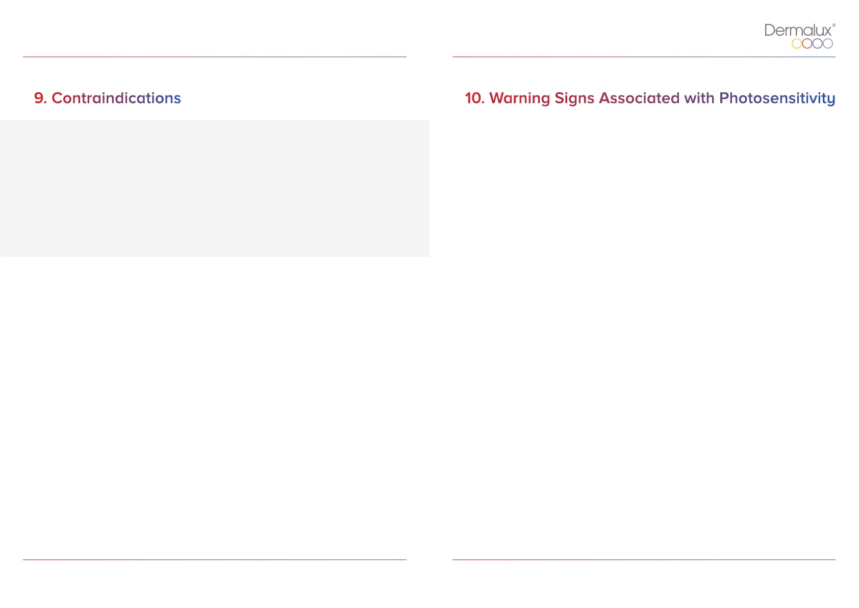 9. Contraindications 10. Warning Signs Associated with Photosensitivity