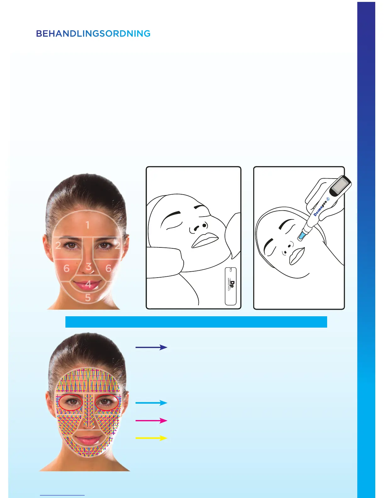 1. Dela visuellt in behandlingsområdet i sex områden: panna, haka, kind, ögon, näsa och