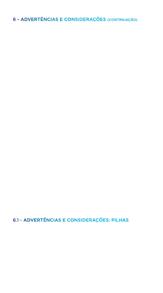 6.1 - ADVERTÊNCIAS E CONSIDERAÇÕES: PILHAS