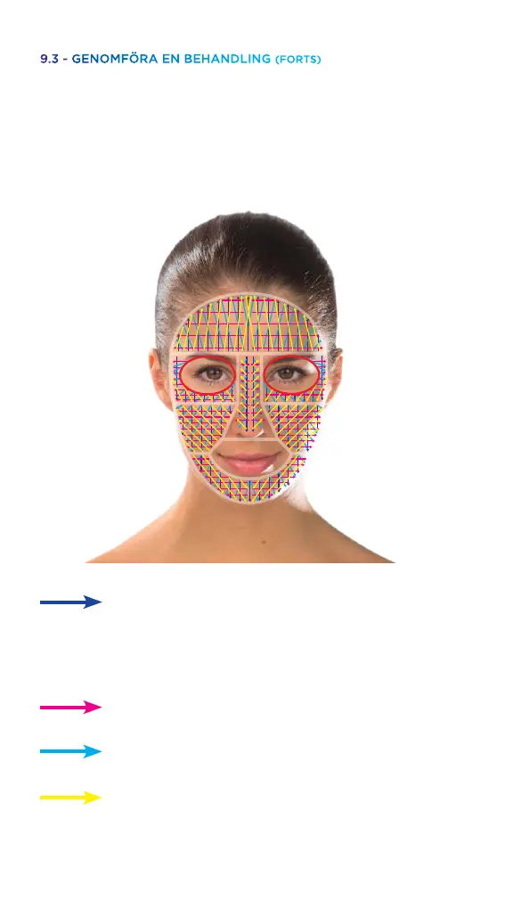 9. För varje område, genomför behandlingen i alla fyra riktningar som visat