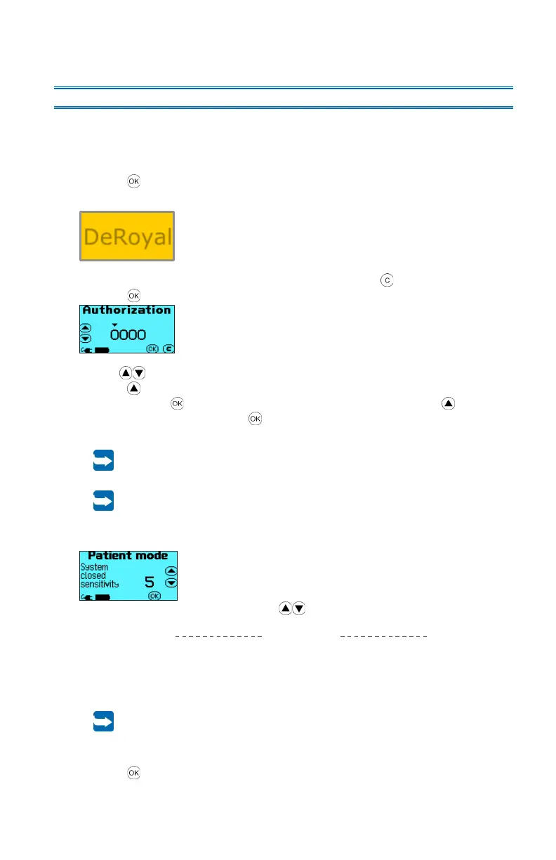 seal” as well as the patient runtime can be viewed and reset. To select the patient mode,