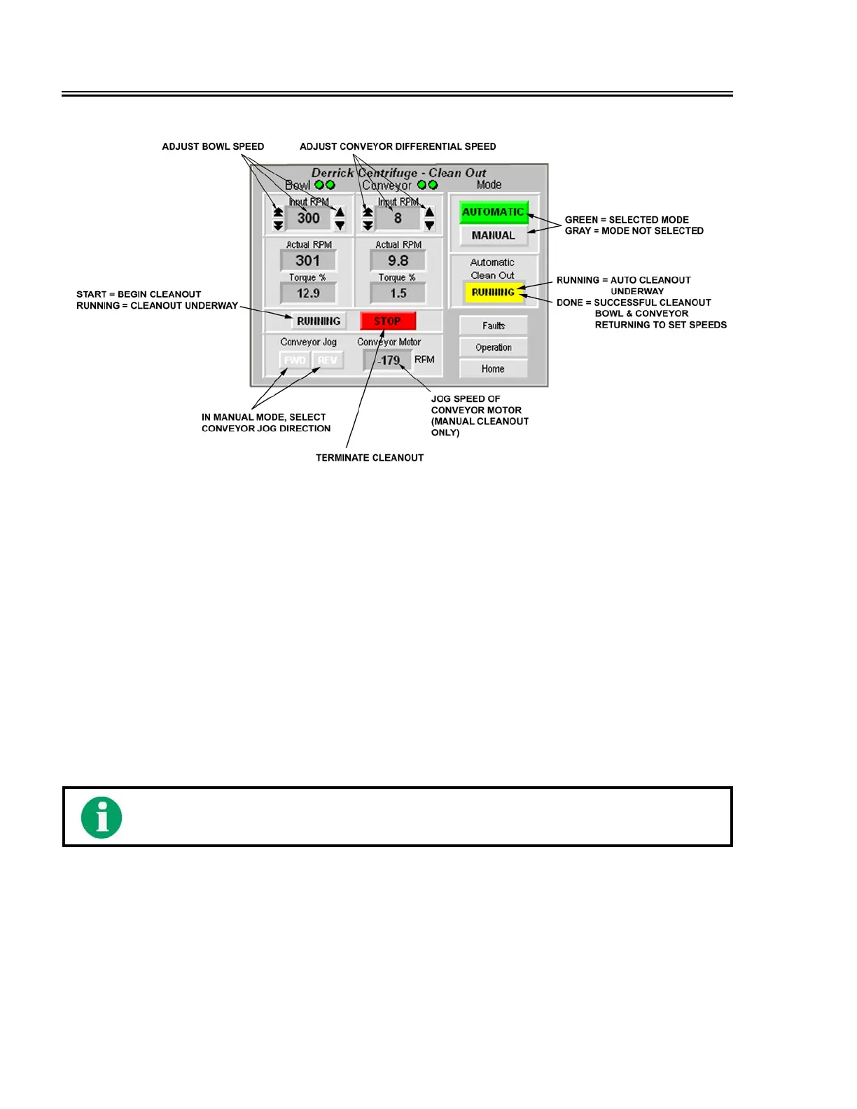 the centrifuge. Operator intervention is then required to repeat the automatic cleanout operation.