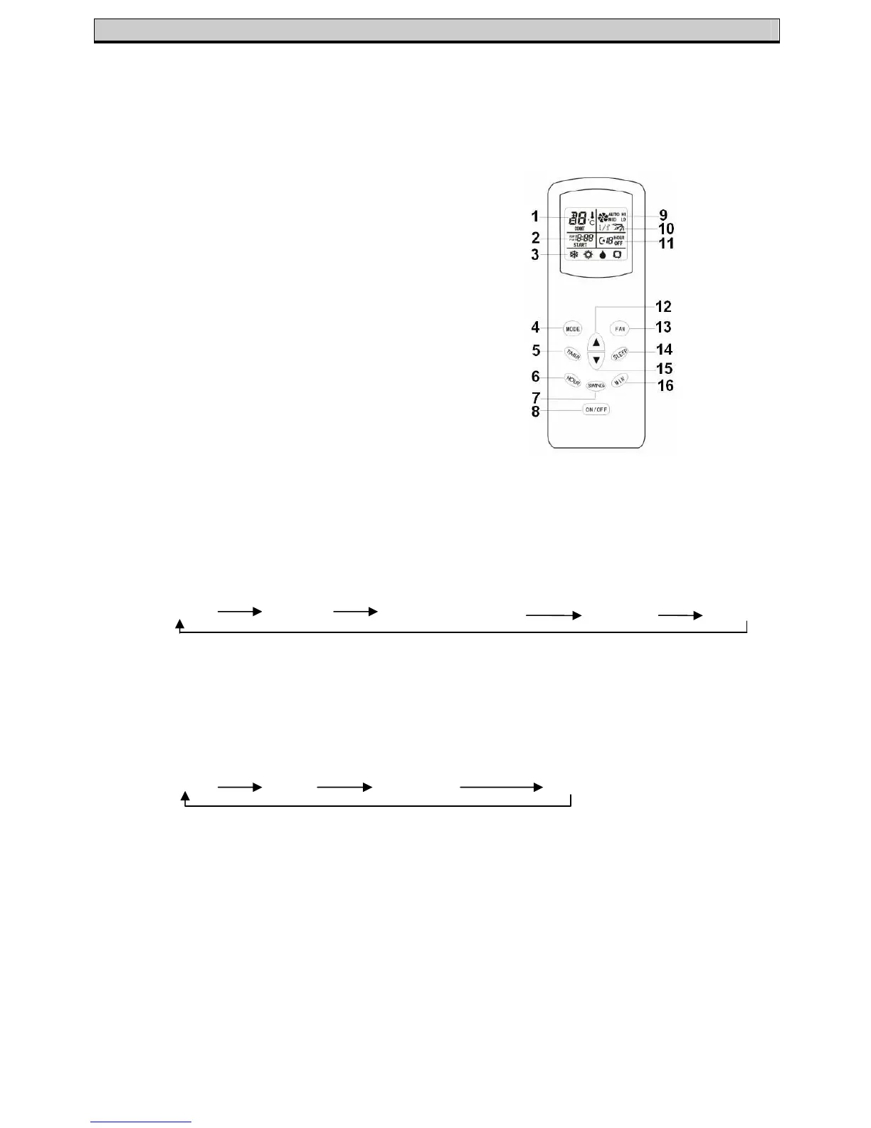 • To change the fan speed, press the ‘Fan’ button (13) repeatedly, until the