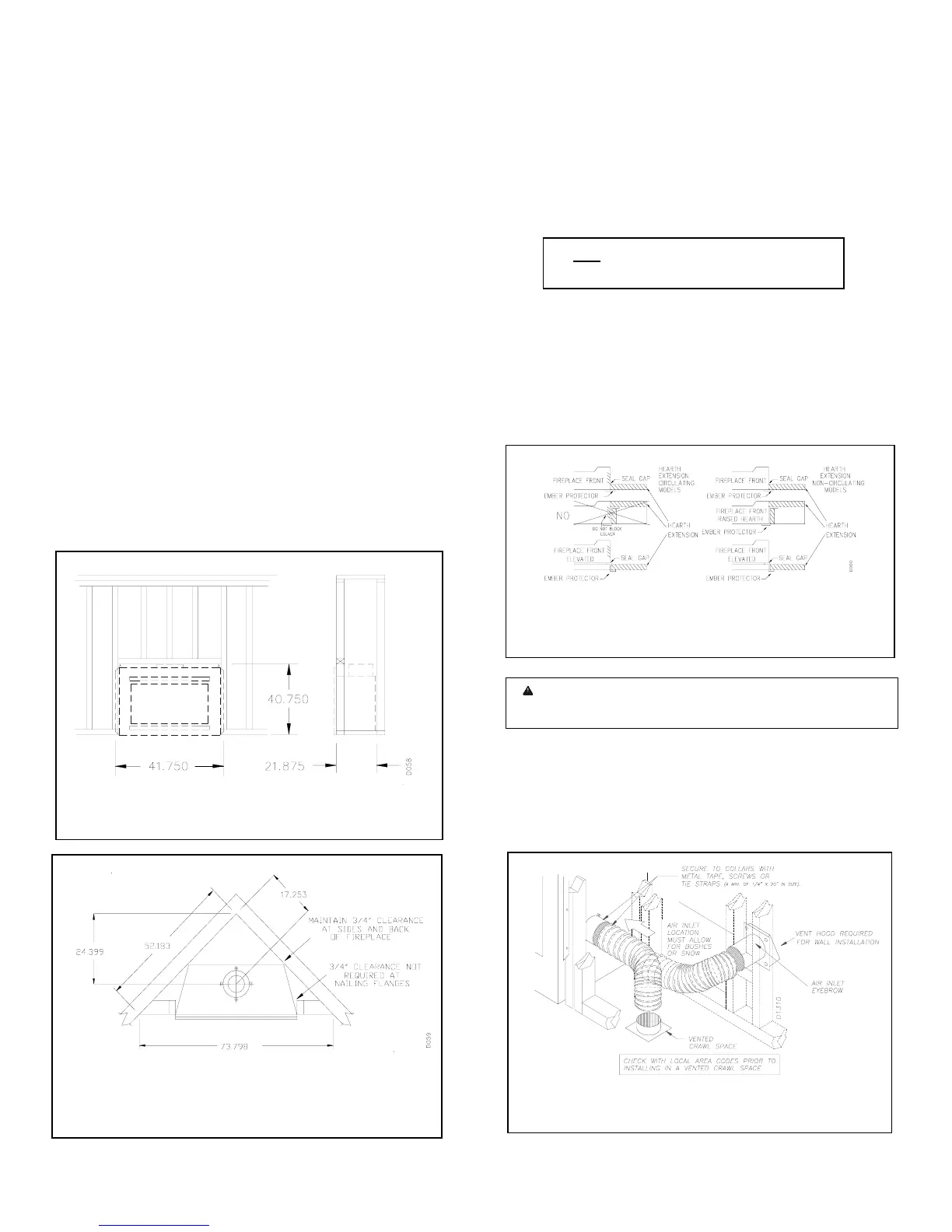 ember protector (provided), must be placed between the hearth